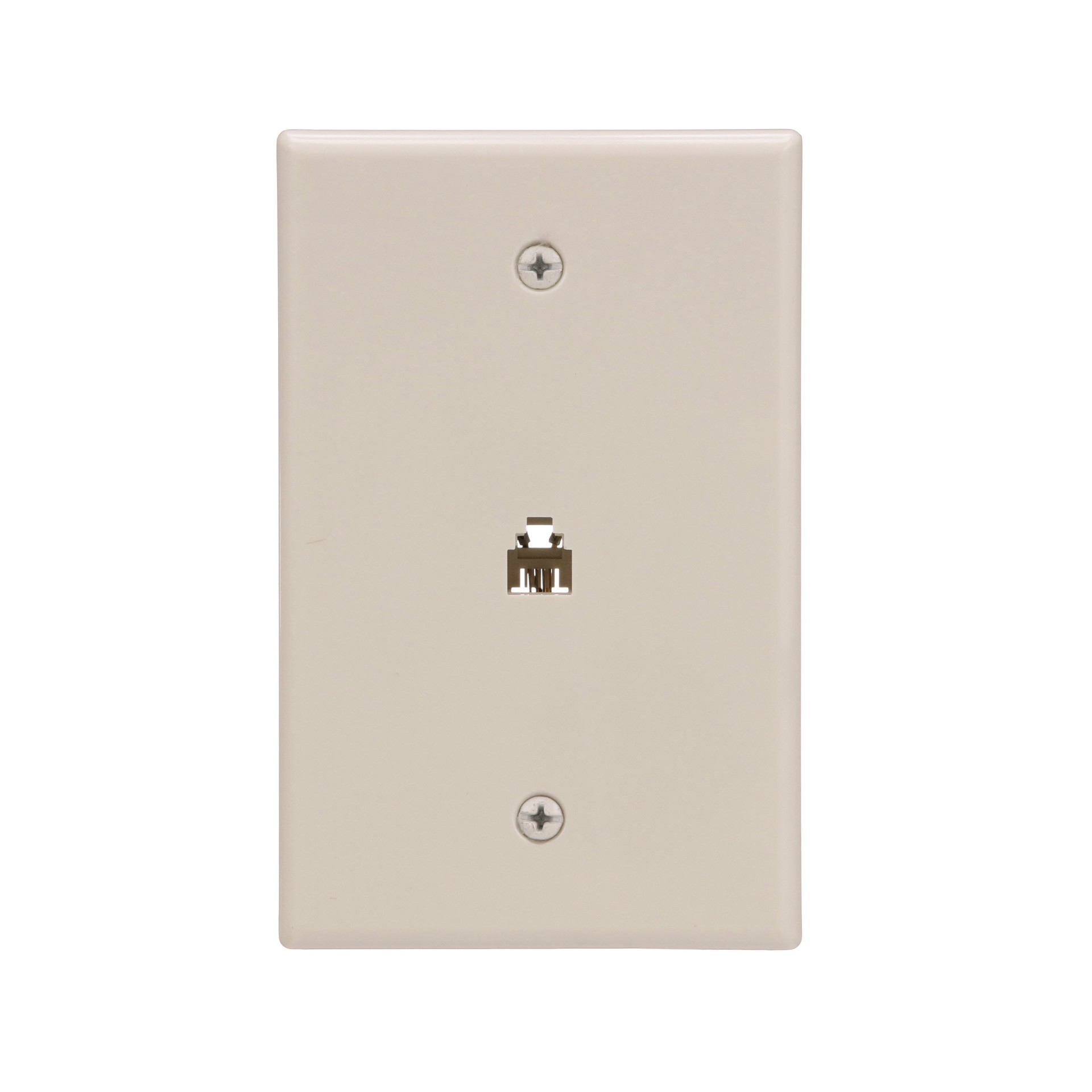 Mid-size surface mount wall plate with telephone jack. 4 conductor jack. Wire type is RJ11 and RJ14. Ideal for both home and offices.