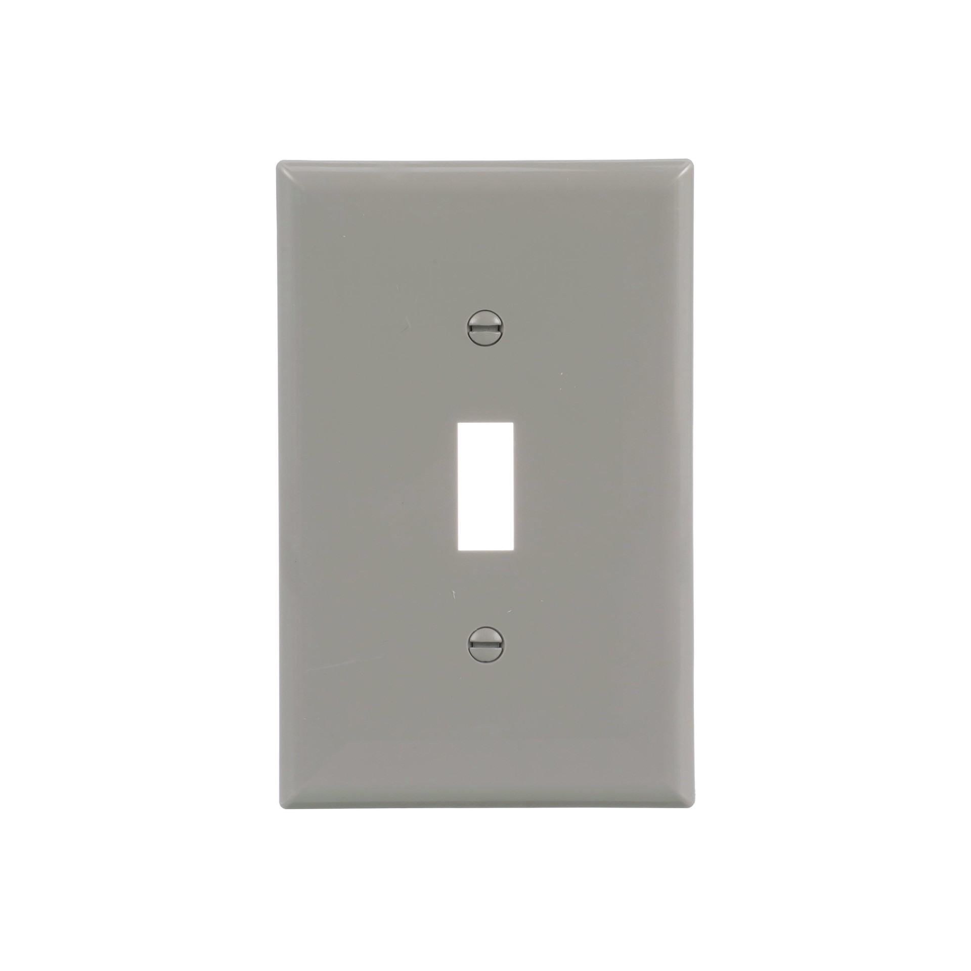 Mid-size single-gang wall plate for use with a toggle switch. Made of virtually unbreakable polycarbonate with high structural rigidity, long-term form retention, and superior impact and abrasion resiā¦