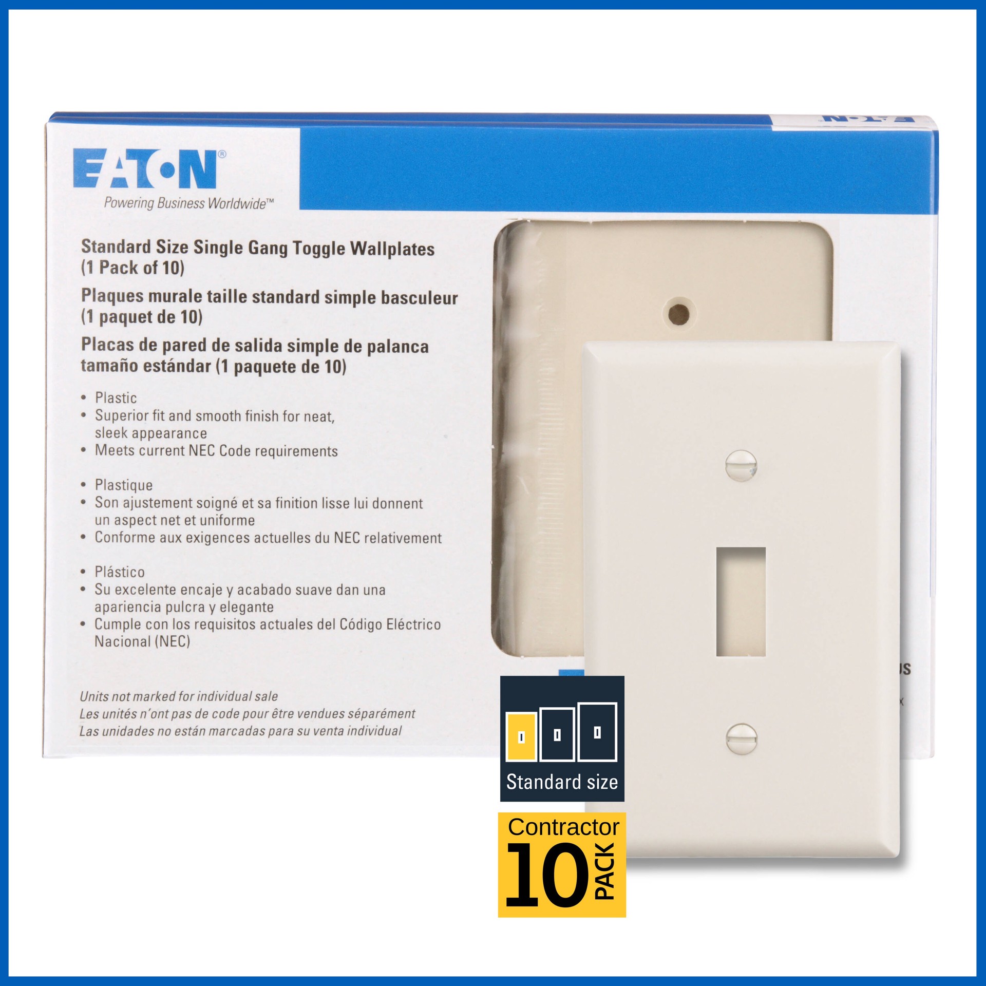 Standard size, single-gang, toggle wall plate for use with a toggle switch. Matching mounting screws provided. Virtually unbreakable plates reduce installation and replacement costs. Contractor pack o…