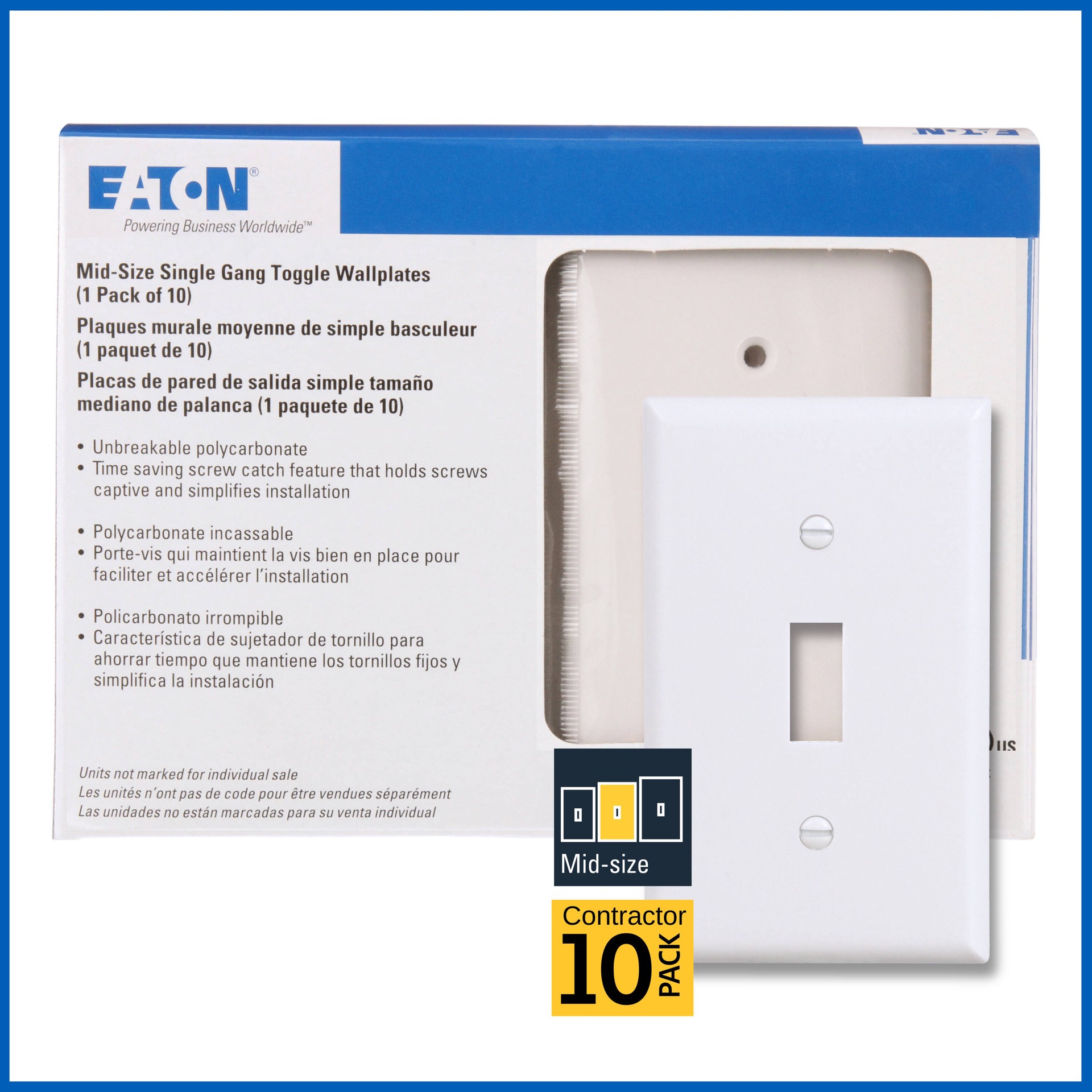 Eaton 1 -Gang Standard Size White Thermoplastic Indoor Toggle Wall Plate 10 -Pack