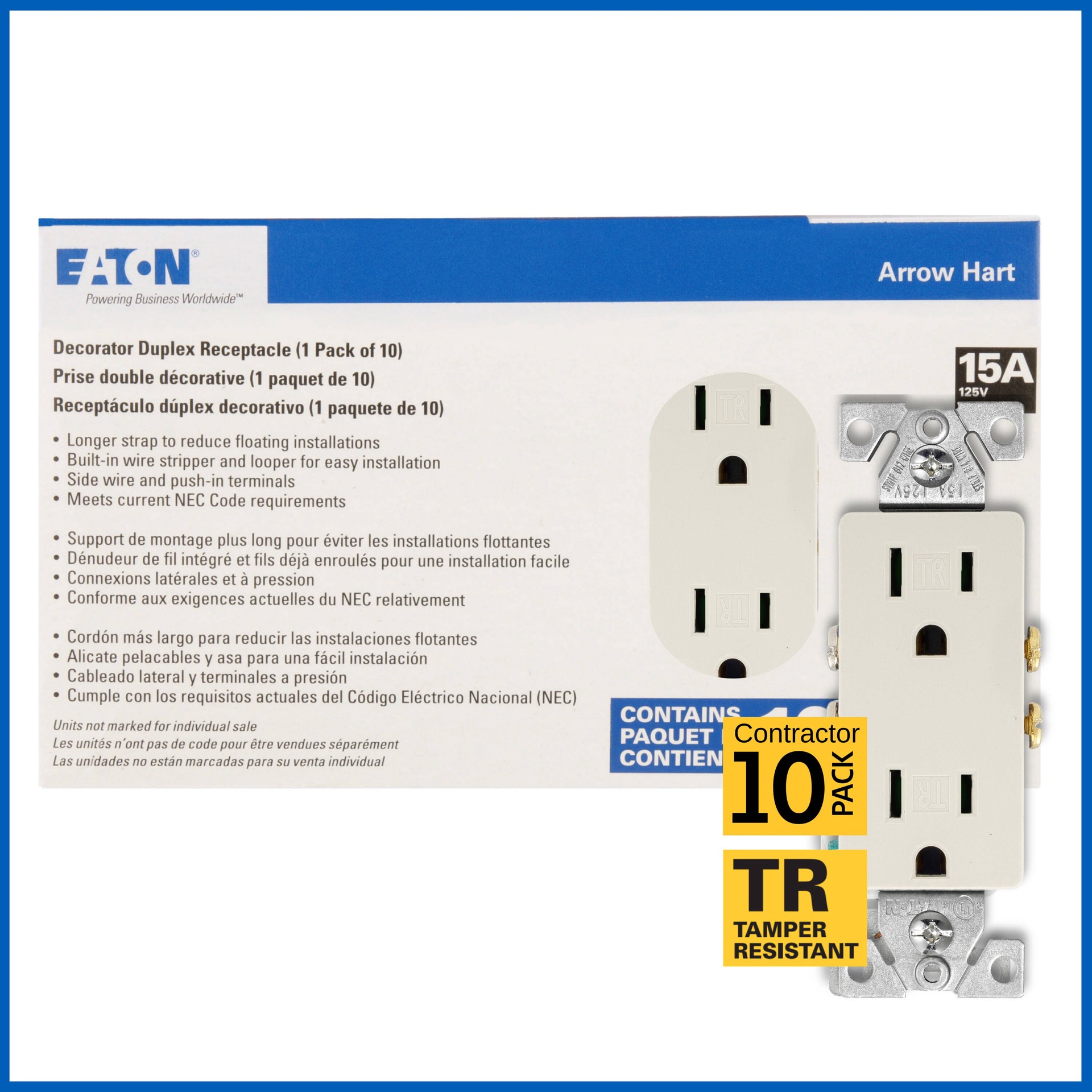 Eaton 15 -Amp 125-volt Tamper Resistant Residential Decorator Outlet Receptacles , Light almond 10 -Pack