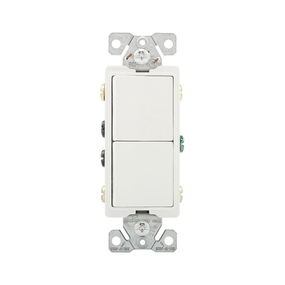 White finish two combination three-way switches offer 15A, 120/277V capacity engineered for smooth action and years of safe, dependable performance in a variety of applications. Convenient back and si…