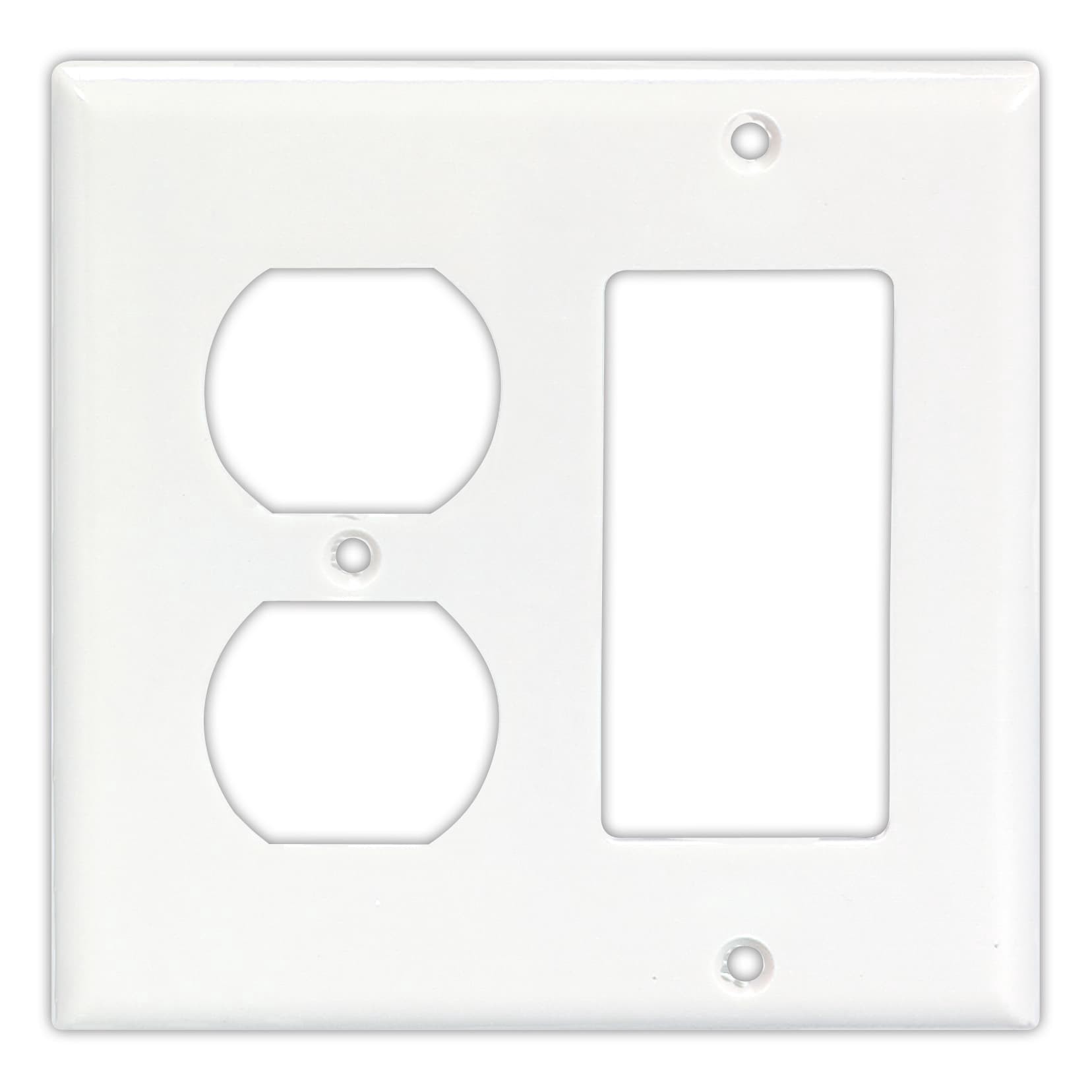 Smooth finish. Standard size plastic. Thermoset plastic. Matching colored plate screws.