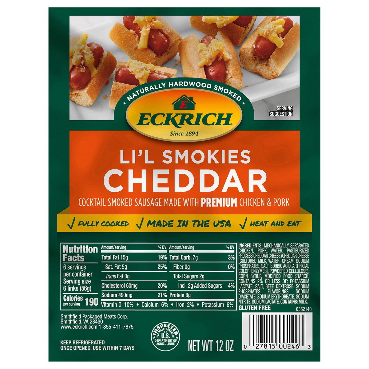 Eckrich Li'l Smokies Cheddar Cocktail Smoked Sausage Links taste great and are perfectly sized for creating crowd-pleasing appetizers and snacks. These little smoked sausage links are easy to eat, mak…