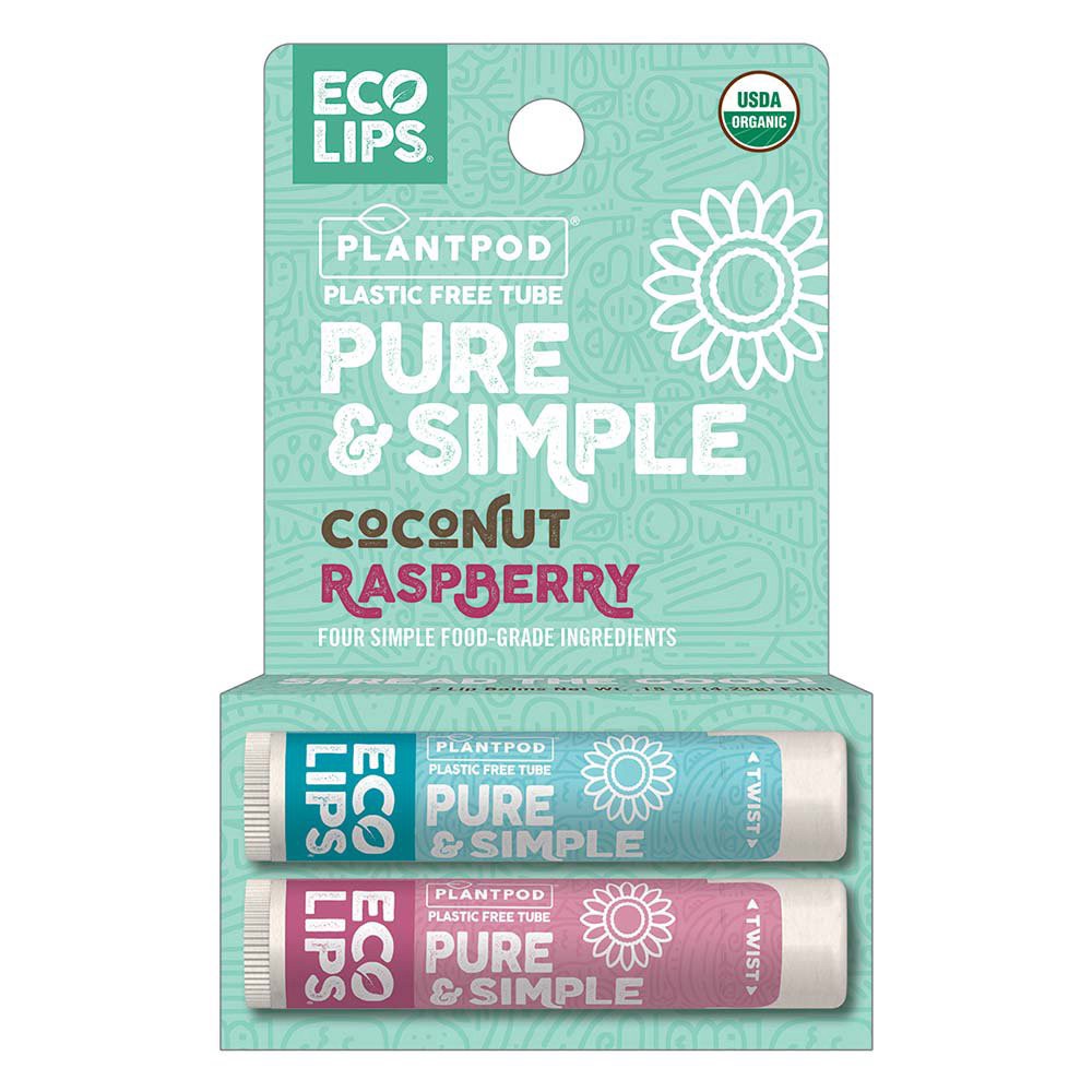 Eco Lips Pure & Simple Plant Pod Organic Lip Balm - Coconut & Raspberry, 2 ct