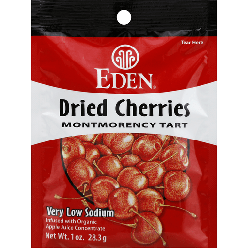 Infused with organic apple juice concentrate. Very low sodium. Tart cherries contain at least 17 antioxidants. Eden tart cherries are infused with organic Eden apple juice concentrate. They contain no…