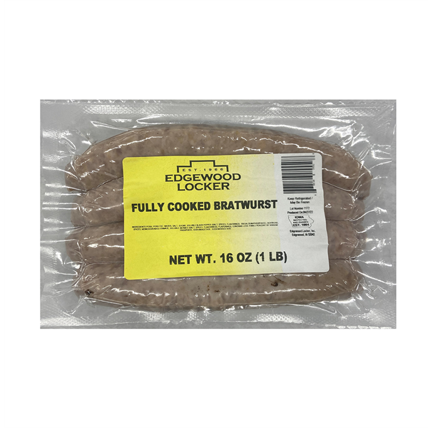 slide 1 of 1, Edgewood Locker Fully Cooked Bratwurst, 16 oz
