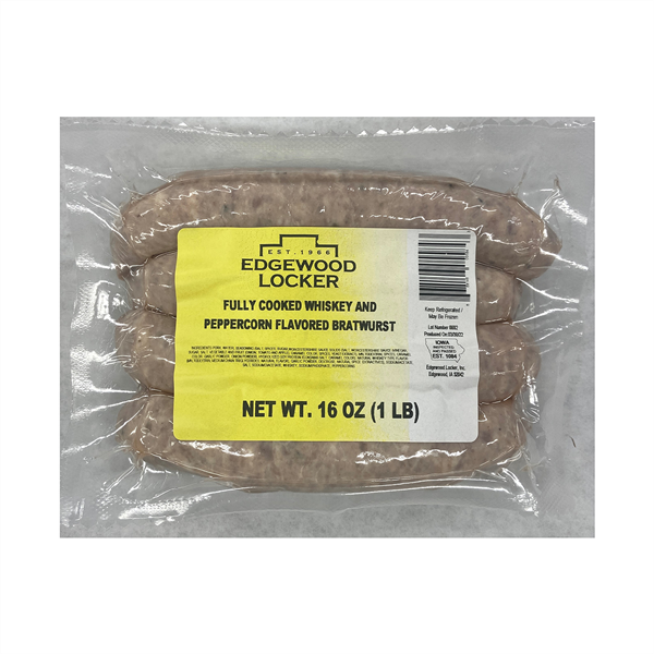 Edgewood Locker Fully Cooked Whiskey & Peppercorn Bratwurst