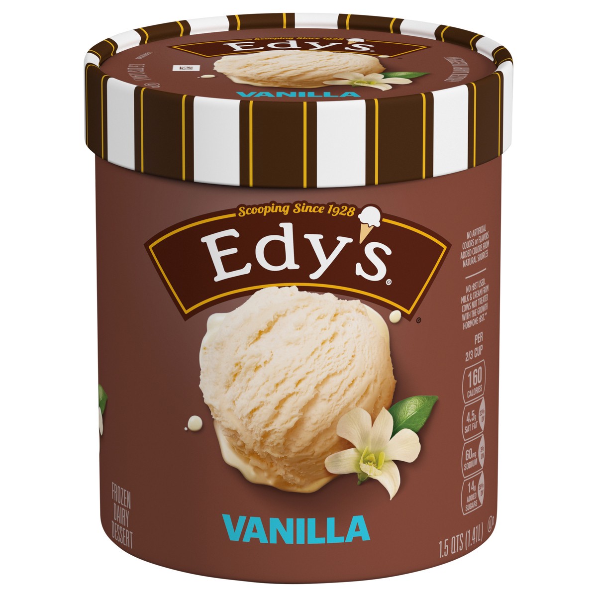 Per 2/3 Cup: 170 calories; 6 g sat fat (30% DV); 55 mg sodium (2% DV); 17 g total sugars. Nutritional Compass: Nestle - Good food, good life. Thoughtful Portion: A 1/2 cup scoop of delicious Edy's iceā¦
