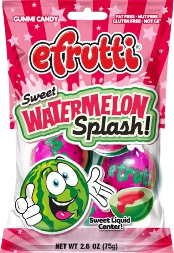 You are about to lose your rind over efrutti's Watermelon Splash 3D Gummi! This 4 ct bag of our deliciously soft gummi has an extra Splash of Watermelon flavor with a liquid center. 12 classic style p…
