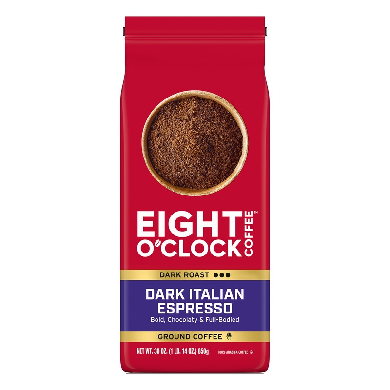 Eight O'Clock Coffee Dark Italian Espresso, our darkest roast, ground extra fine to achieve a “true espresso” experience. Strong aroma and subtle flavors of chocolate and caramel in a bold, full-bodied finish.