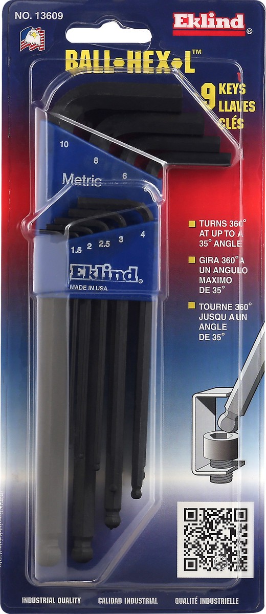 Turns 360 degrees at up to a 35 degrees angle. Industrial quality. The Ball-Hex-L Advantage: This 2-in-1 tool is manufactured using high quality Eklind Alloy Steel. The ball profile on the long arm pr…