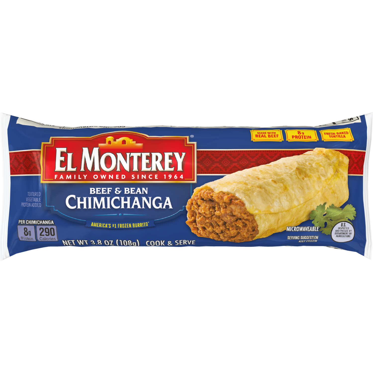 Frozen Mexican food that's a crowd favorite! Serve up El Monterey Beef & Bean Chimichangas and your family will walk away satisfied and full. Frozen meal or frozen dinner ready in just minutes, this d…