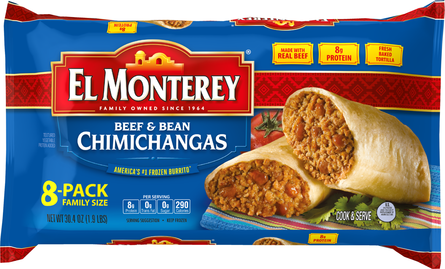 They''re a crowd favorite! Serve up El Monterey Beef & Bean Chimichangas and your family will walk away satisfied and full. Quick, frozen meals ready in just minutes, these delicious chimichangas incl…
