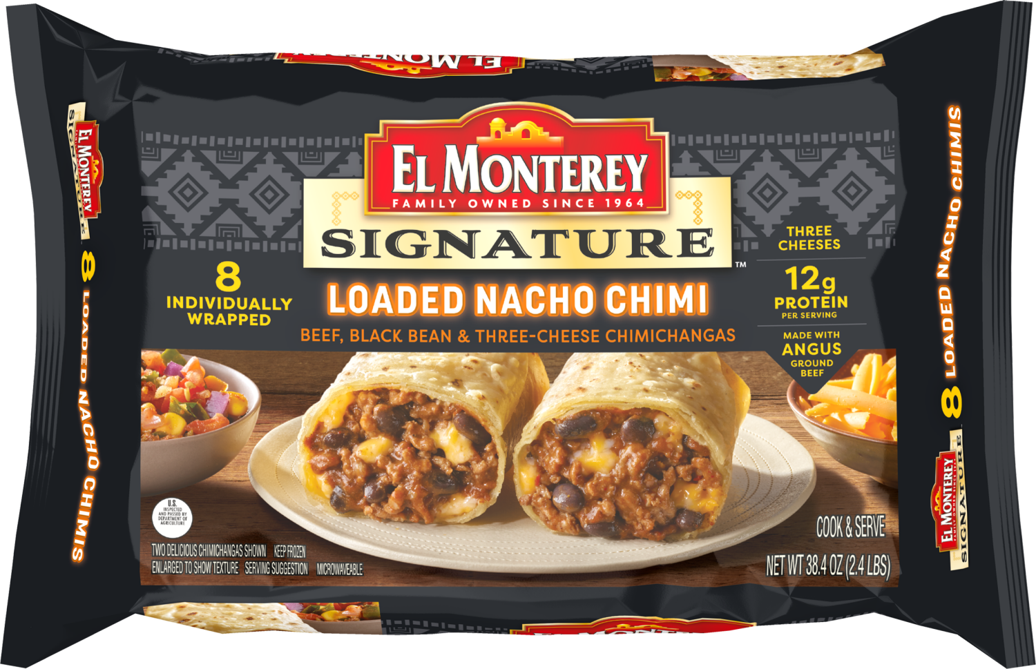 Enjoy a delicious snack or meal anytime with El Monterey Signature Loaded Nacho Chimichangas. These El Monterey Signature chimichangas are packed with real angus beef, cheddar, mozzarella and Monterey…