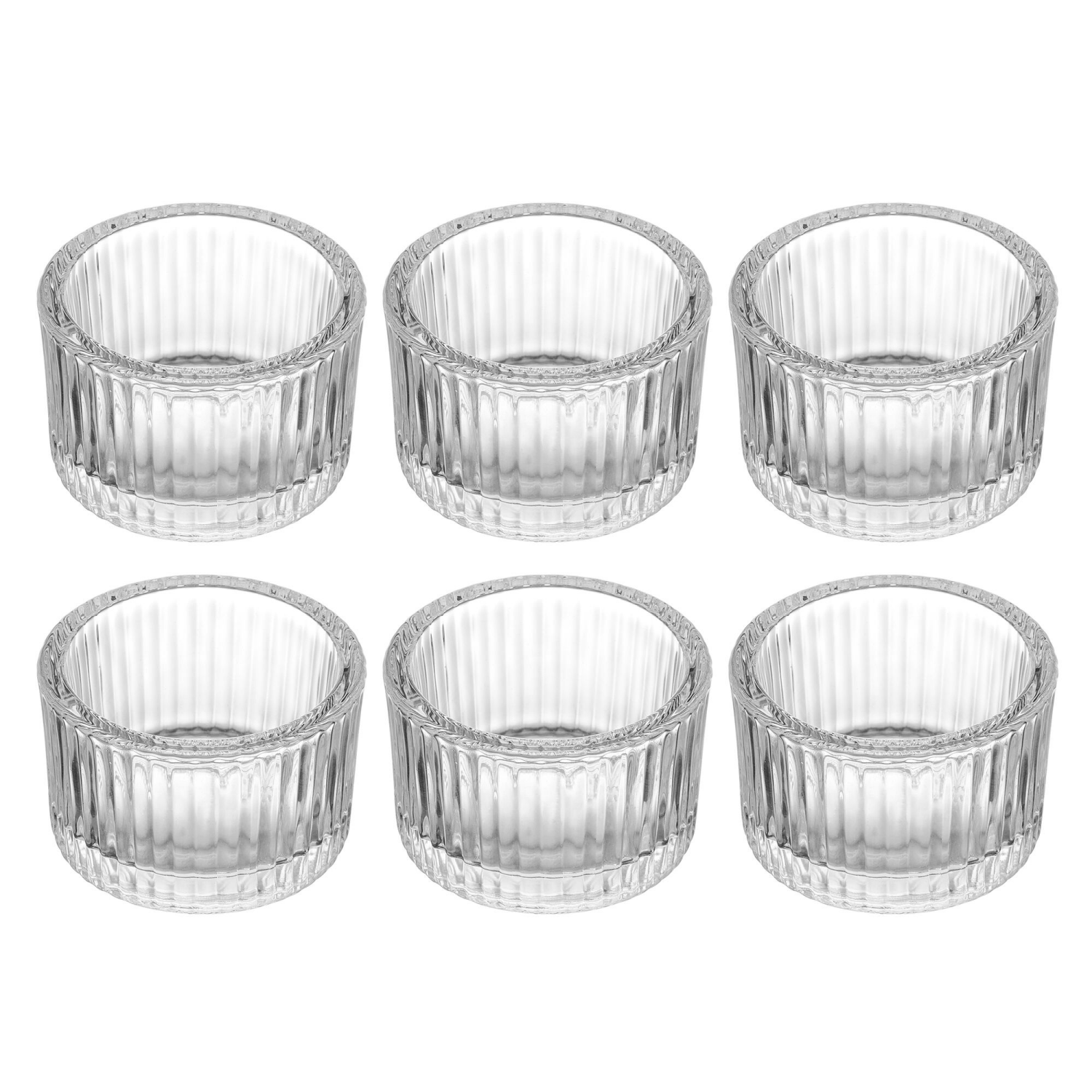 Enhance your décor while adding a soft glow and warm ambience to any room with this Set of 6 Vertical Stripe Tea Light Holders by Elements. These understated holders feature clear designs and ridged d…