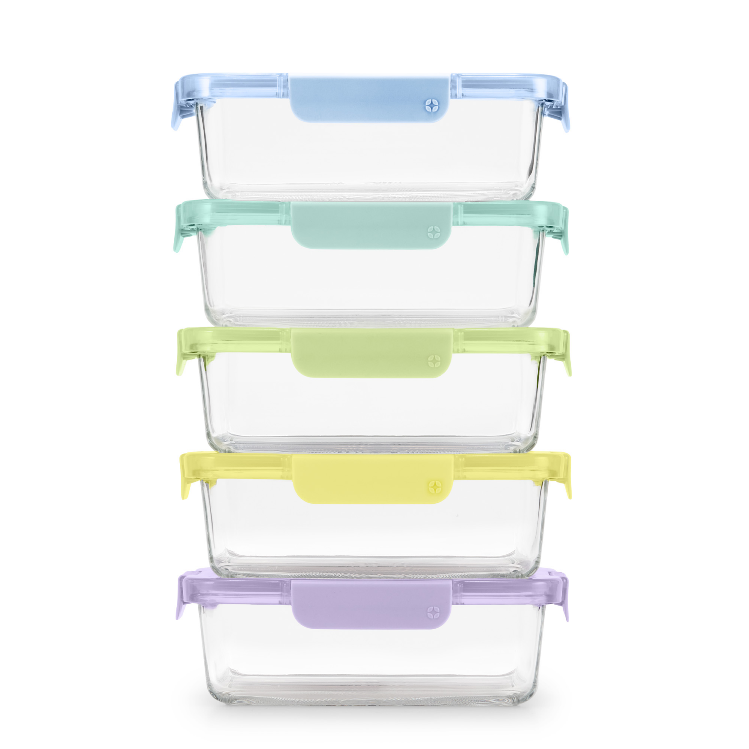 Ello 5 Cup 10Pc, 5 Pack Glass Meal Prep Sets Leak-Proof Glass Food Storage Containers with Airtight BPA-Free Plastic Lids, Dishwasher, Microwave, and Freezer Safe