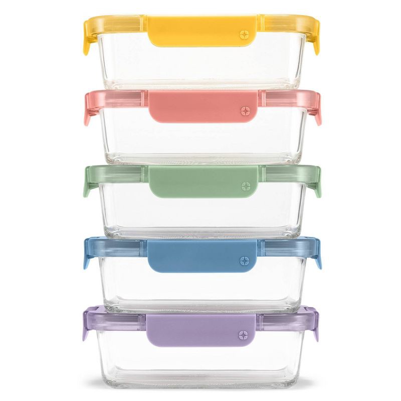 Ello Color Lock 10pc (set of 5) Glass Meal Prep Food Storage Containers Set Multicolor Brights: Glass, Oven & Microwave Safe, Dishwasher Safe,