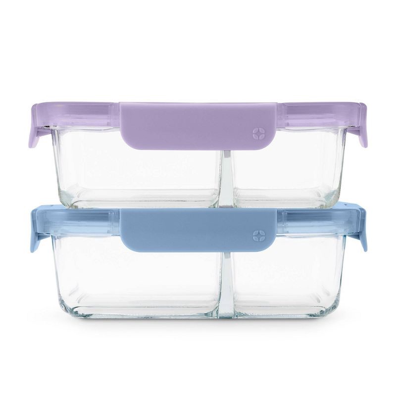 The Ello Color Lock 4-piece Divided Meal Prep Set includes two 3.4 cup (27oz) glass containers with leak-proof lids, perfect for keeping foods separate until it's time to eat. Made with glass and a di…