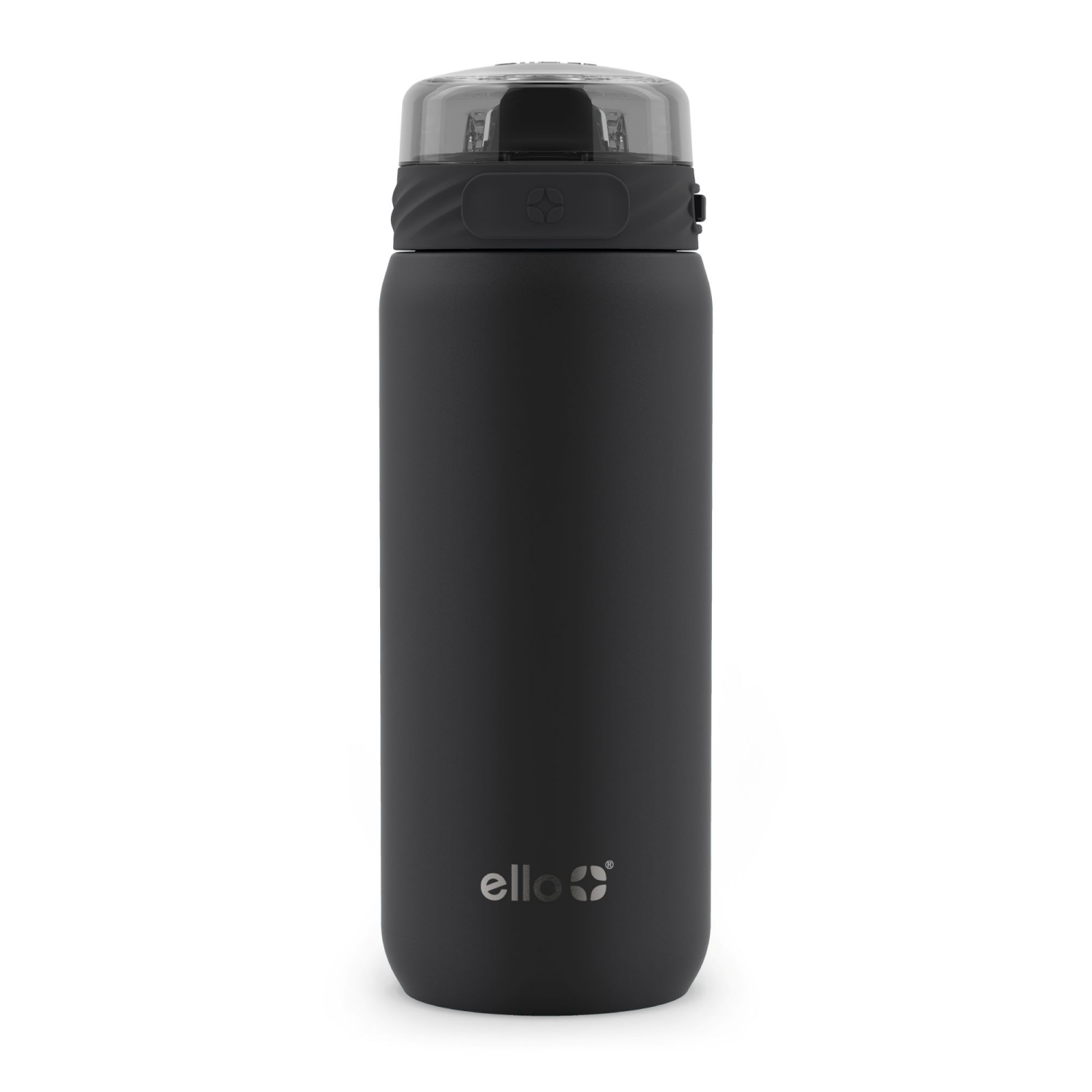 Ello Cooper 18oz Stainless Steel Water Bottle with Straw and Carry Handle, Double Walled and Vacuum Insulated Metal, Leak Proof Locking Lid with Soft Silicone Spout, Reusable, BPA Free, Black