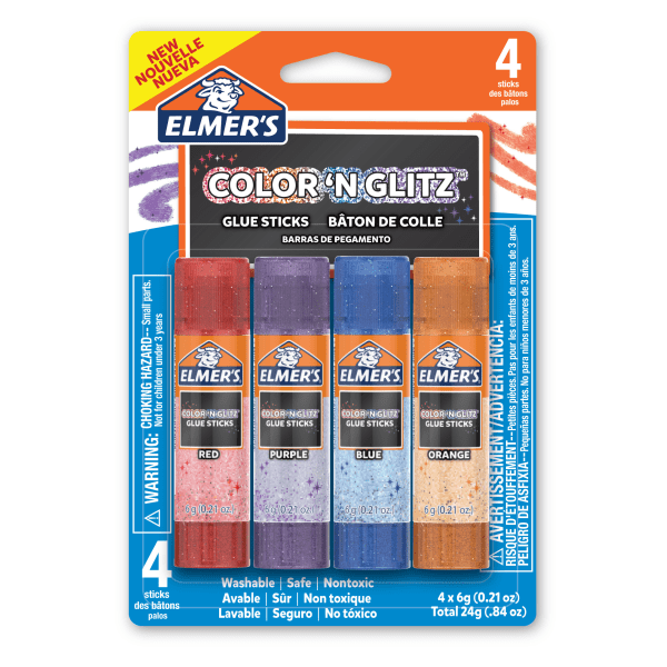 Elmer's Color 'N Glitz Glue Sticks, 0.21Gm, Pack Of 4 Glue Sticks