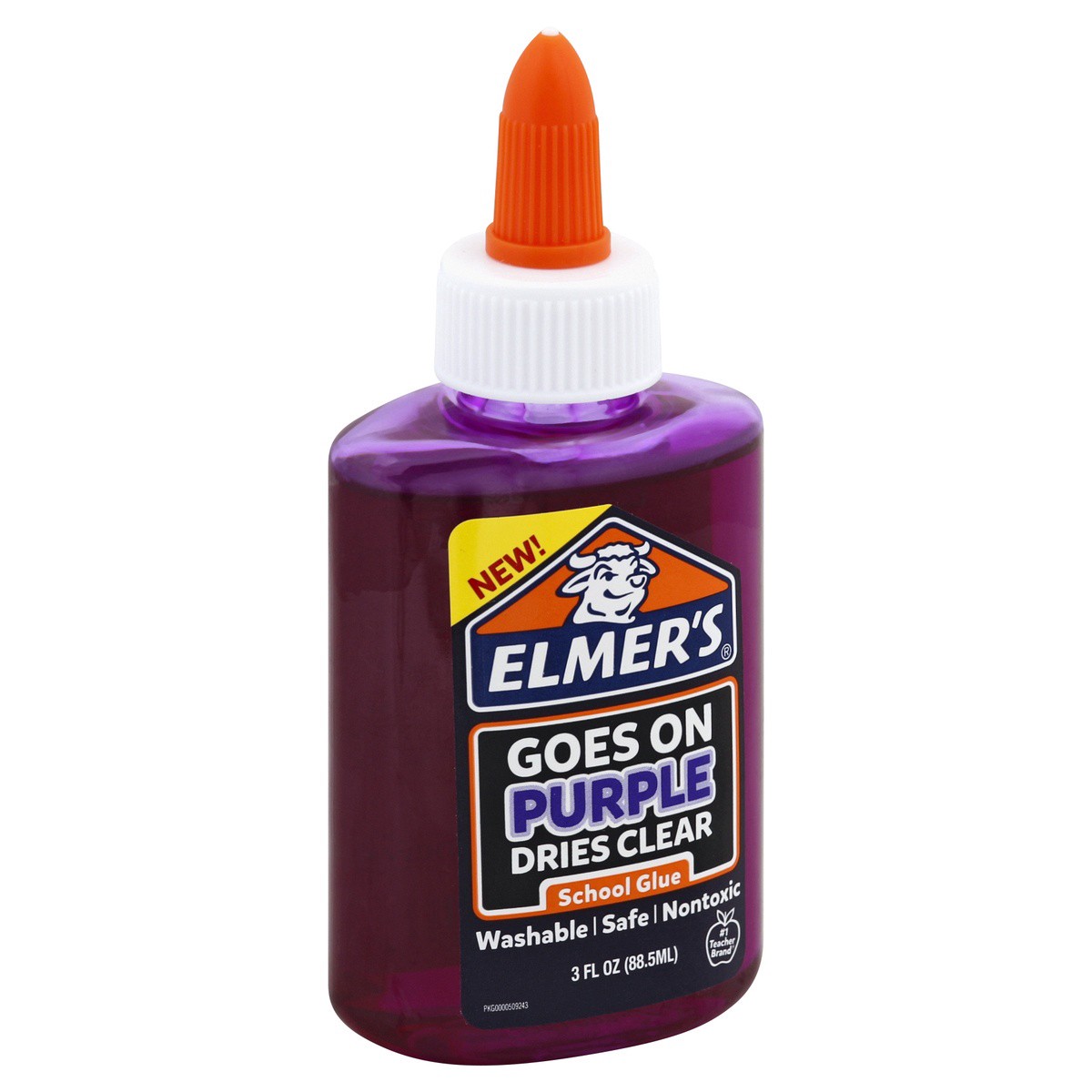 New! Goes on purple. Dries clear. Safe. Nontoxic. No. 1 teacher brand. Ideal for children. Safe, nontoxic. Dries clear. Elmer's Disappearing Purple Liquid Glue is specially formulated to go on purple …