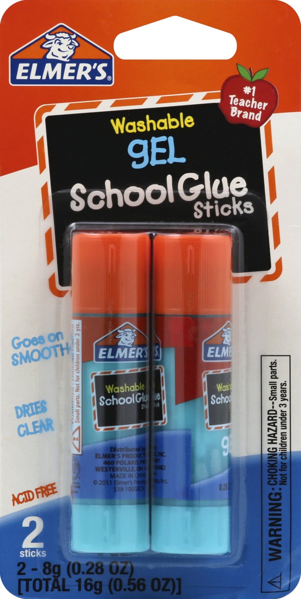 No. 1 Teacher brand. Goes on smooth. Dries clear. Acid free. Upromise - Save for college. School projects; artwork; paper; fabric; decorations; mount pictures. Elmer's encourages recycling! Elmer's Gl…