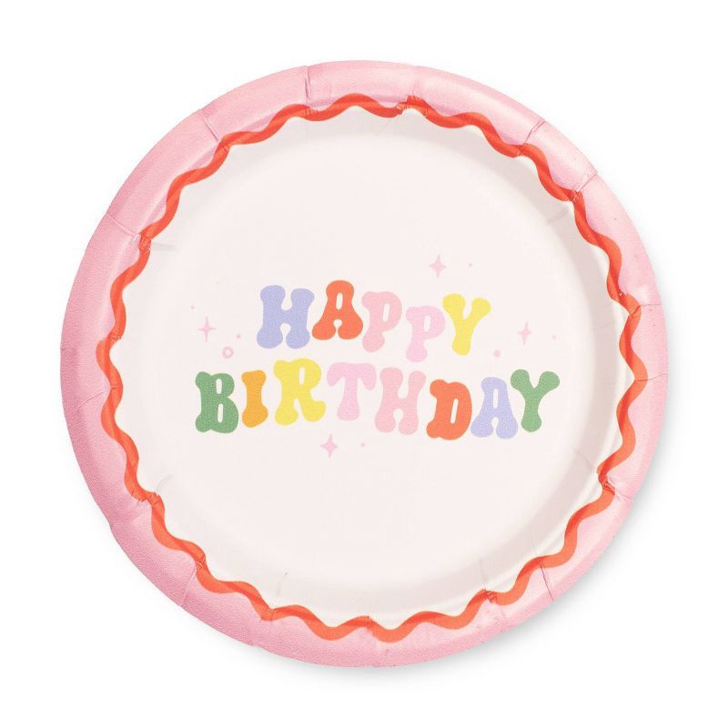 - Bright and colorful “Happy Birthday” plates that bring fun to any celebration