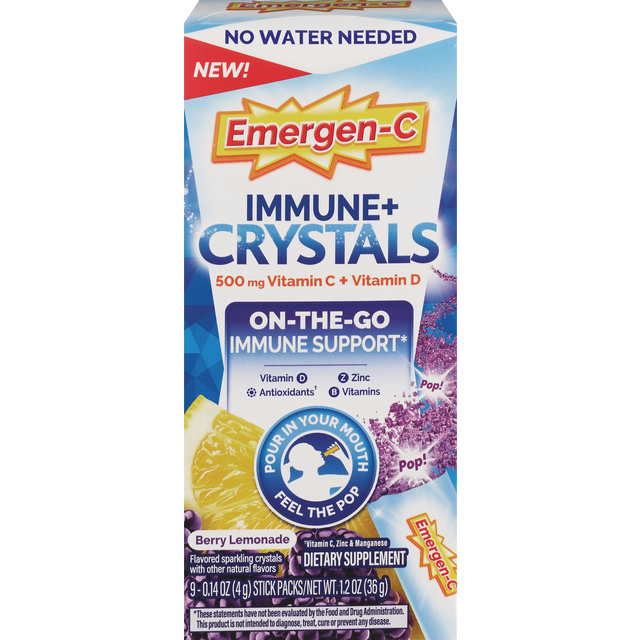 NO WATER NEEDED NEW! IMMUNE+ CRYSTALS 500 mg Vitamin C + Vitamin D ON-THE-GO IMMUNE SUPPORT* Vitamin D Zinc Antioxidants† Vitamins. POUR IN YOUR MOUTH FEEL THE POP Berry Lemonade †Vitamin C, Zinc & Ma…