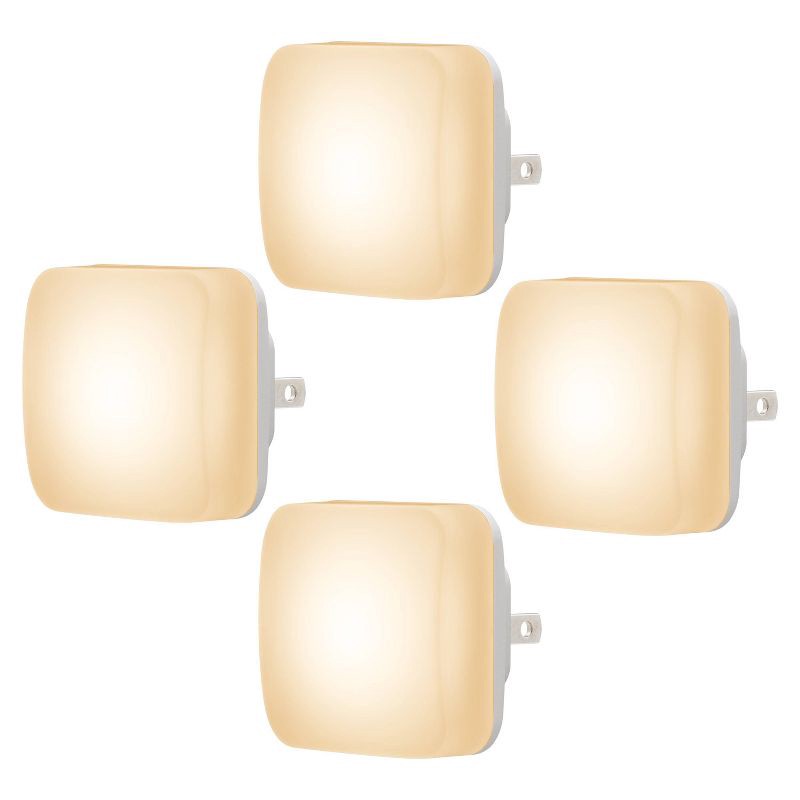 - Four Small Night Lights – Four compact guide lights feature a square design with rounded corners that saves space by covering only one receptacle and blends beautifully into most settings