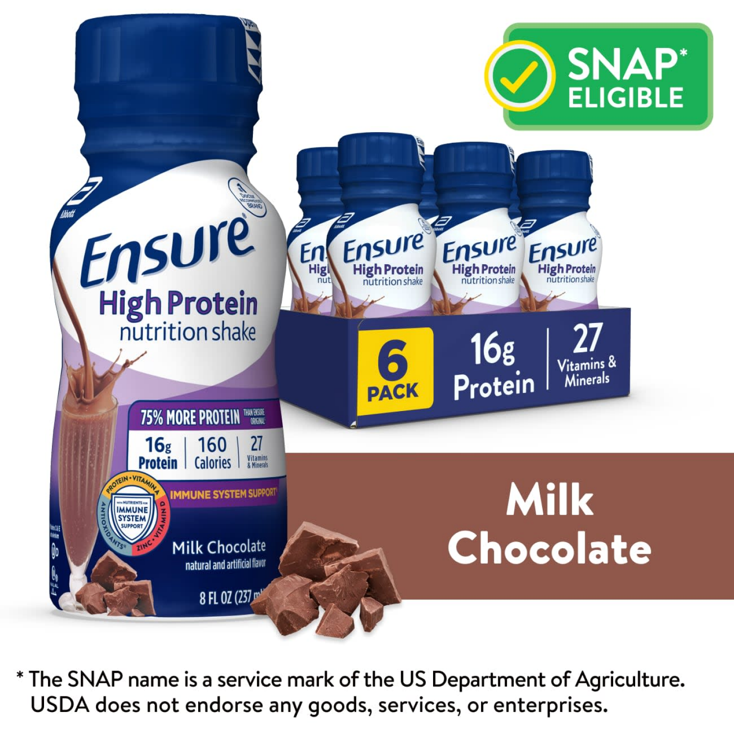 Ensure High Protein Nutrition Shake Milk Chocolate Ready-to-Drink 6-8 fl oz Bottles