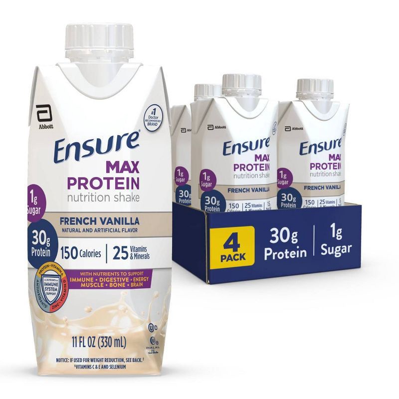 Ensure Max Protein Nutrition Shake French Vanilla Non-Caffeinated - 30g Protein - 11 fl oz /4pk