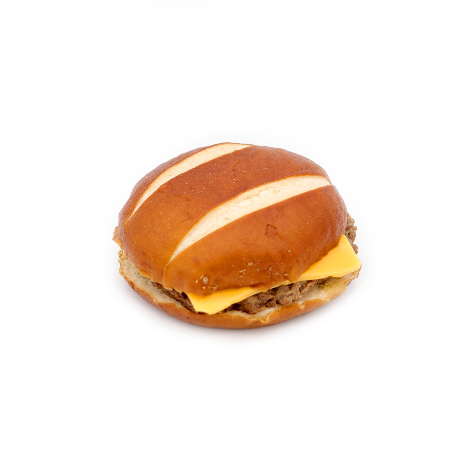 slide 1 of 1, Entree Single Pub Cheeseburger On Pretzel Bun, 1 ct