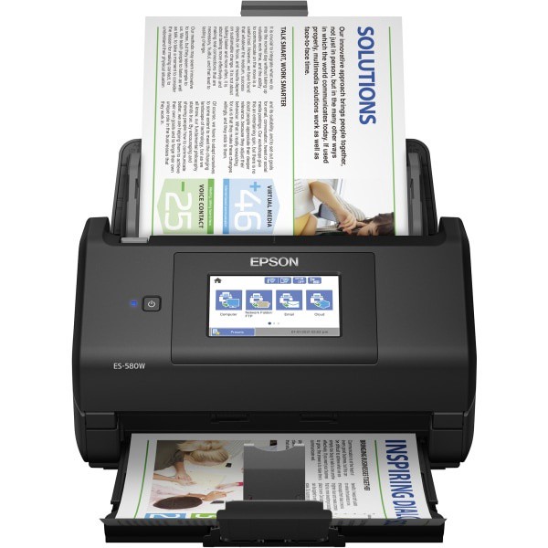 Stay on top of large scanning jobs with help from the Epson WorkForce ES-580W Wireless Duplex Touch-Screen Document Scanner. The large 4.3" touch screen allows you to easily choose your desired settin…