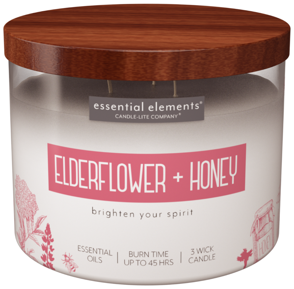 Essential Elements 3 Wick Elderflower + Honey Candle 1 Each