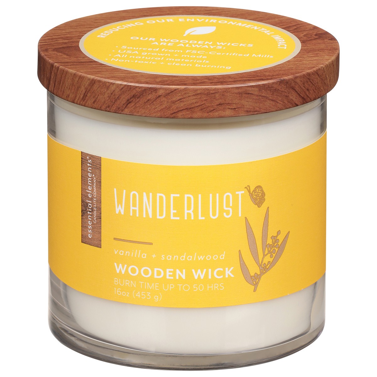 Essential Elements Wanderlust Wooden Wick Vanilla + Sandalwood Candle 16 oz