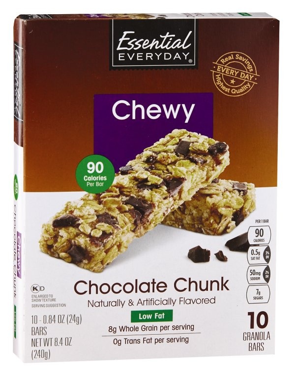 Essential Everyday Chocolate Chunk Granola Bars Lowfat