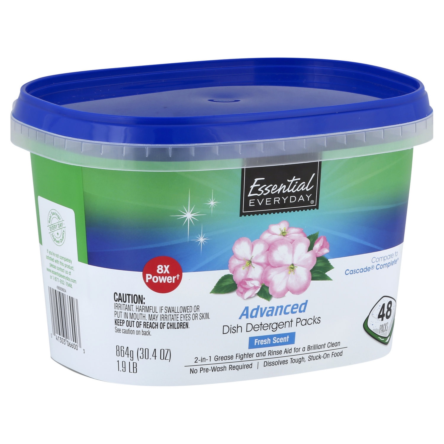 slide 1 of 1, Essential Everyday Dish Detergent Packs, Advanced, Fresh Scent, 48 ct
