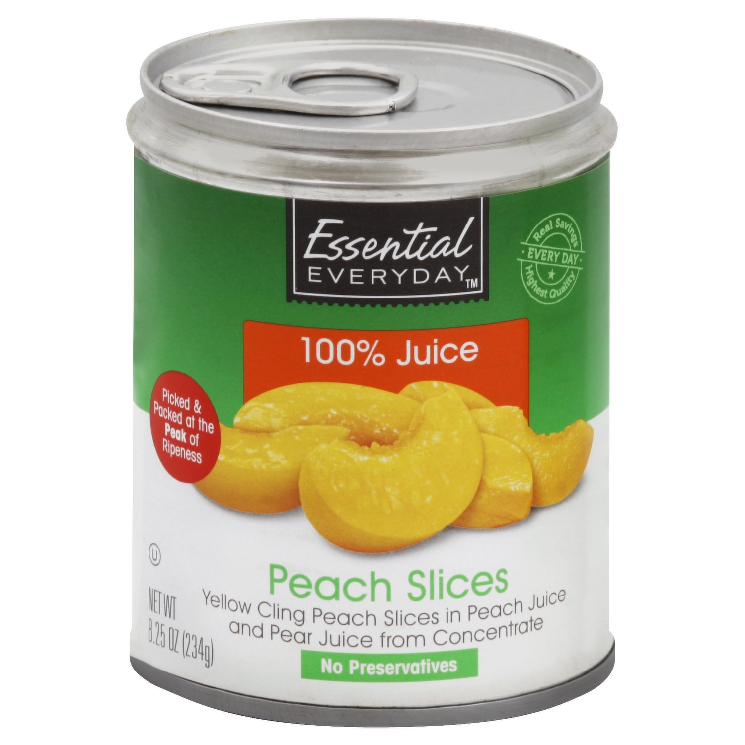 slide 1 of 2, Essential Everyday Peach Slices 100% Juice, 8.25 oz