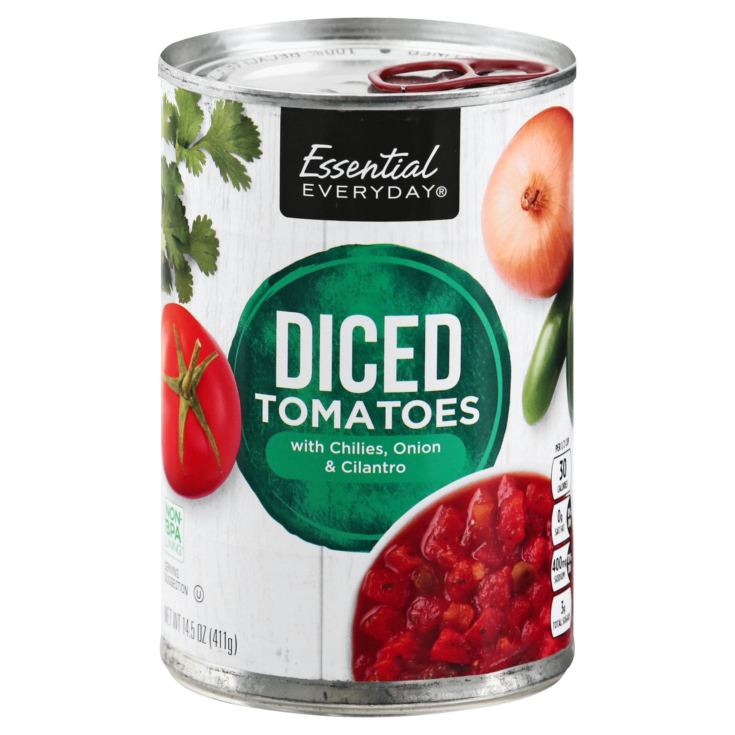 slide 1 of 1, Essential Everyday Tomatoes, with Chiles, Onion & Cilantro, Diced, 14.5 oz