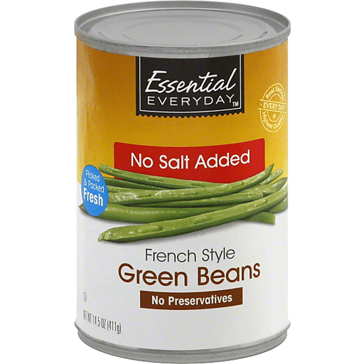 slide 1 of 1, Essential Everyday Green Beans, French Style, No Salt Added, 14.5 oz