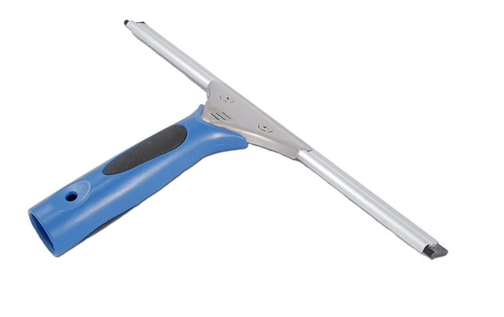 High-performance squeegee. Ergonomic cushion grip. Brushed stainless steel. Replaceable, streak free rubber blade. 12-in wide.