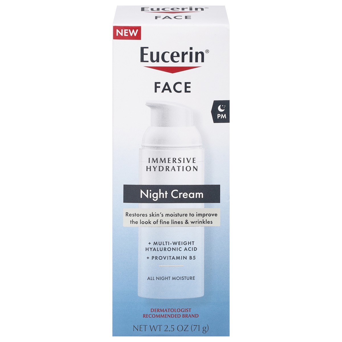 Eucerin Face Immersive Hydration Night Cream restores the skin''s moisture while you sleep to improve the look of fine lines and wrinkles. The clinically proven formula is enriched with Multi-weight H…