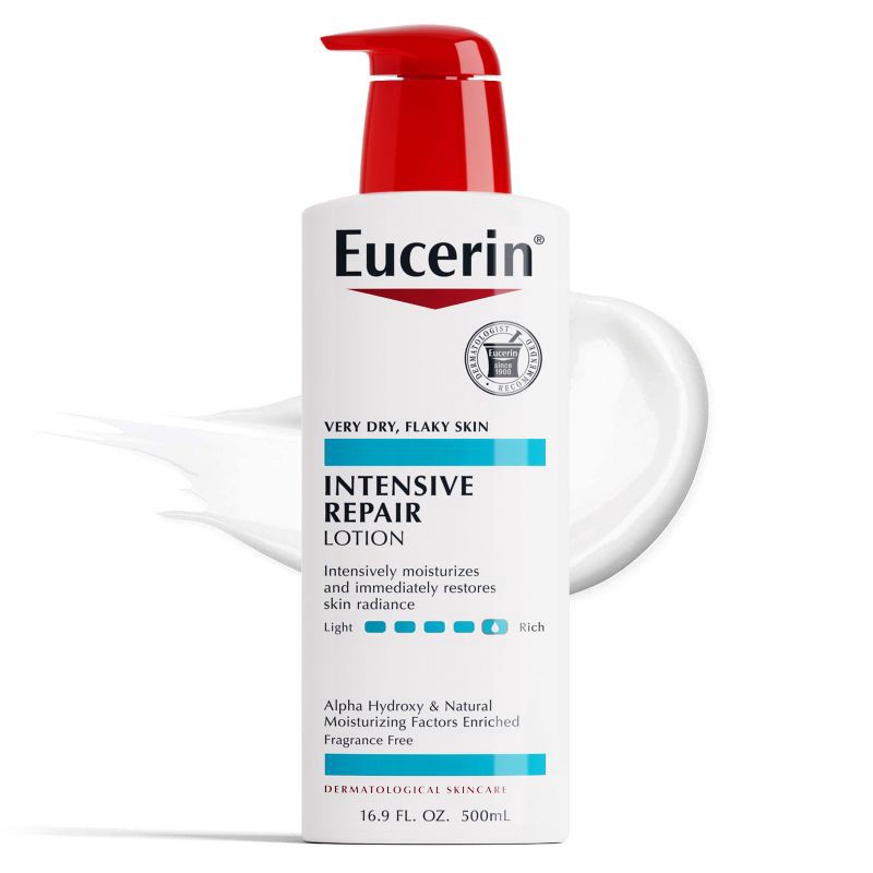 - Eucerin Intensive Repair body lotion for sensitive dry skin immediately restores skin's radiance and delivers 24-hour hydration