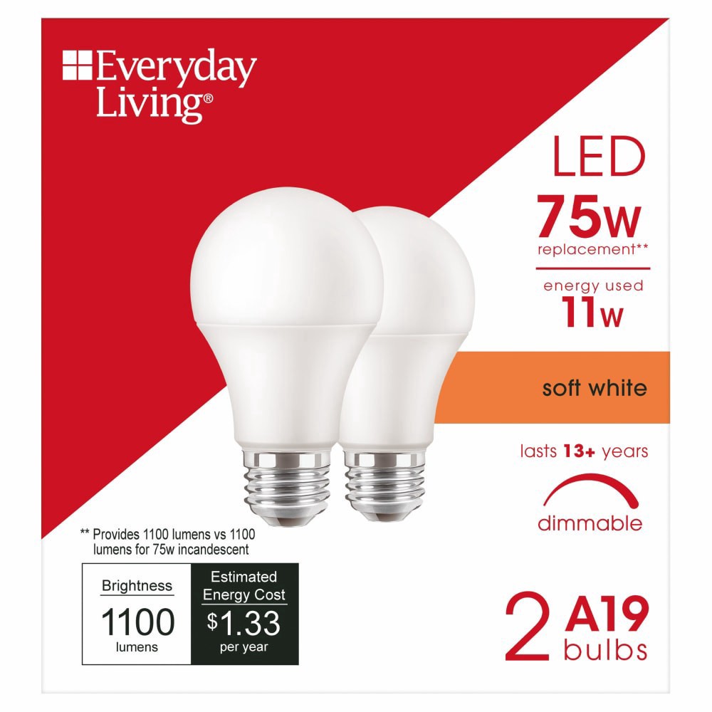 slide 1 of 1, Everyday Living 11-Watt (75 Watt) A19 Led Dimmable Light Bulbs - Soft White, 2 ct