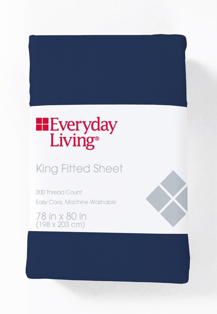 slide 1 of 2, Everyday Living 200 Thread Count Cotton/Polyester Fitted Sheet - Estate Blue, King Size