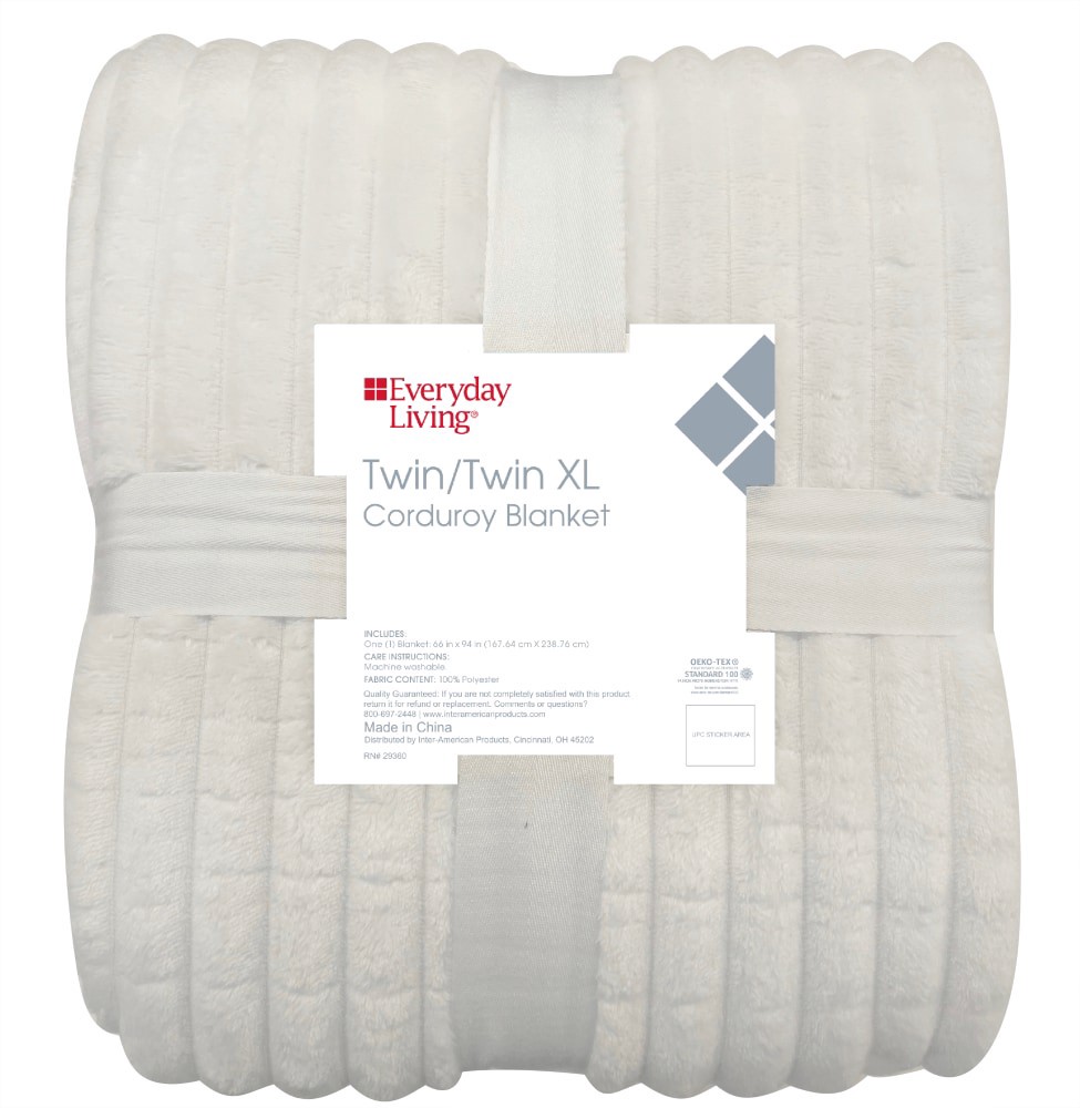 slide 1 of 1, Everyday Living Corduroy Twin White Blanket, 1 ct