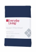 slide 2 of 2, Everyday Living Cotton/Polyester 200 Thread Count Fitted Sheet - Estate Blue, Queen Size