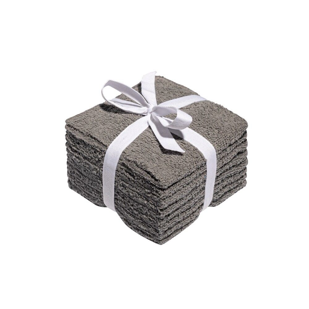 100% Cotton. Solid color everyday washcloth sets available in DK GREY. 8 washcloths in a pack. Benzoyl peroxide resistant, soft and absorbent. The twill ribbon around the pack makes this an easy gift …