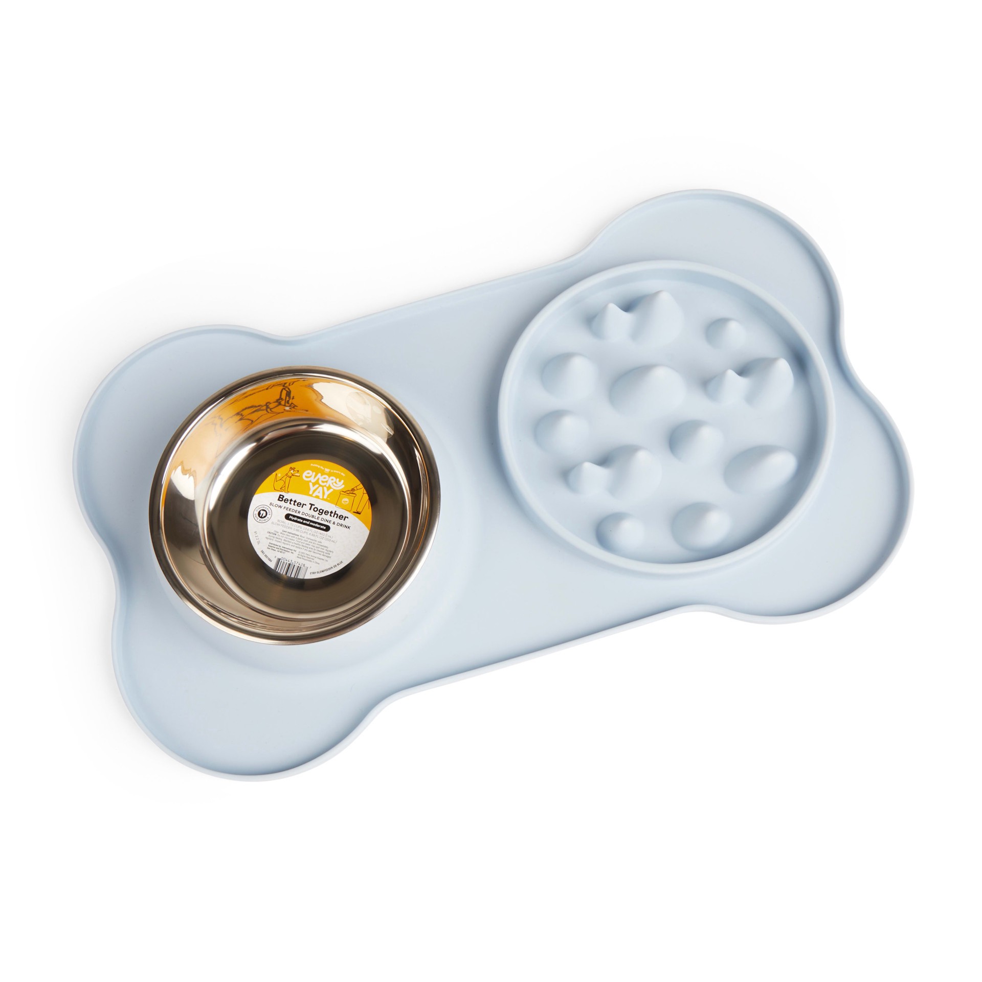 EveryYay Blue Slow Feeder Double Diner Dog Bowl, 1.72 Cups
